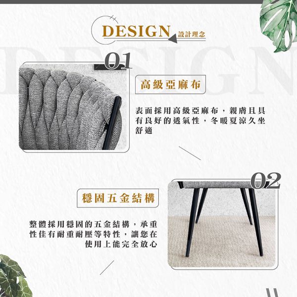 商品詳情 ● 商品特色 1.高級亞麻布 良好的透氣性 2.穩固五金結構 安心使用 3.厚實內理 支撐性佳 ● 商品尺寸 62.5 x 56.5 x 79.5 cm (細節尺寸請參照文案) ● 配送方式 一般宅配 ● 組裝方式 自行組裝商品,有附說明書,若有疑問請洽公司客服 艾拉布面扶手椅-鐵灰色 TWD $6,000 TWD $2,990