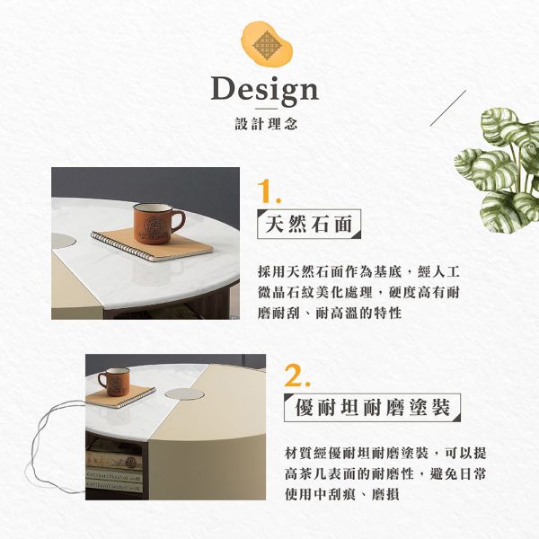 達莉石面旋轉茶几