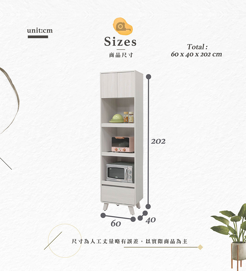 60 x 40 x 202 cm(細節尺寸請參照文案) |