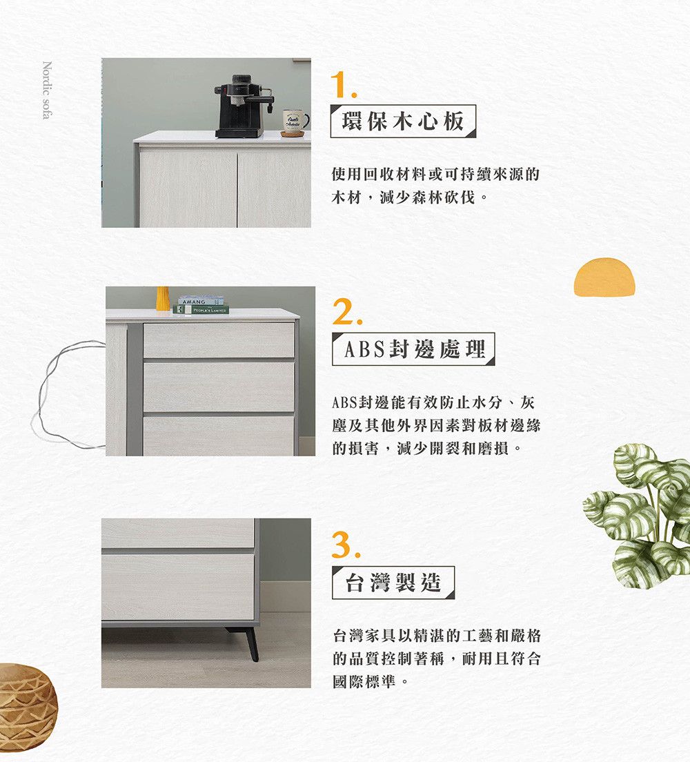 | ● 商品特色 | 1.環保木心板製 木心板的表面光滑細緻 2.ABS封邊處理 有效防止邊緣損壞 3.台灣製造 產品品質穩定 |