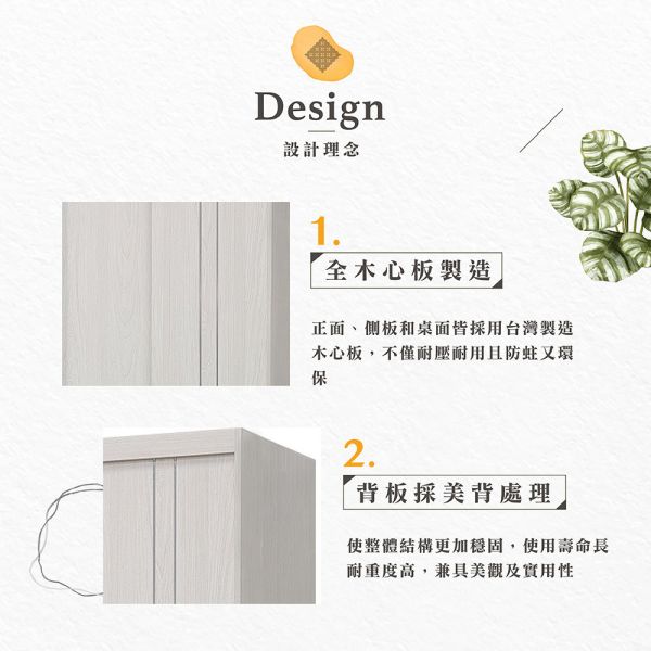 | ● 商品特色 | 1.全木心板材質 結構穩固使用安心 2.背板採用美背處理 3.台灣製造安心又放心 |