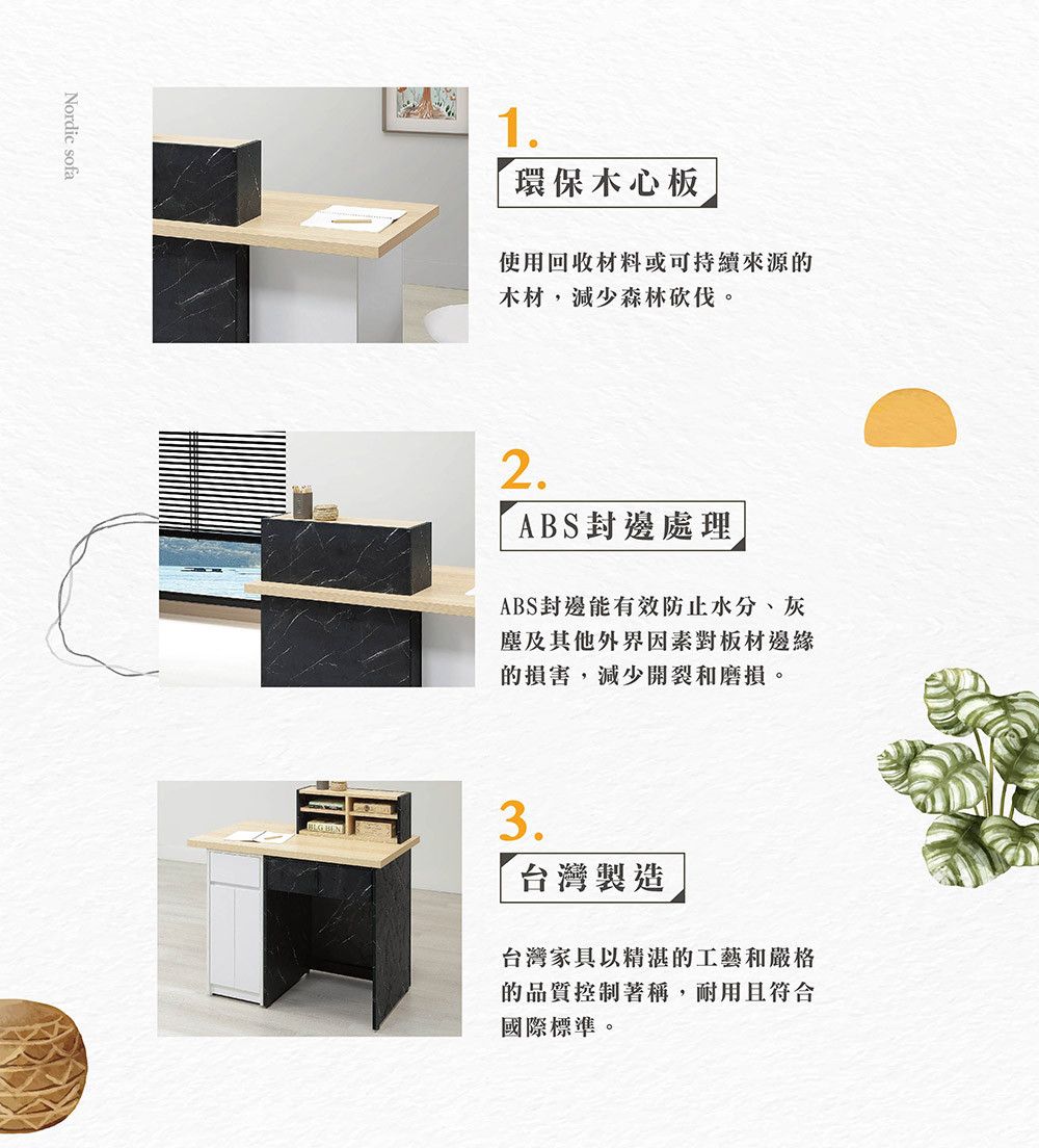 | ● 商品特色 | 1.環保木心板製 木心板的表面光滑細緻 2.ABS封邊處理 有效防止邊緣損壞 3.台灣製造 產品品質穩定 |