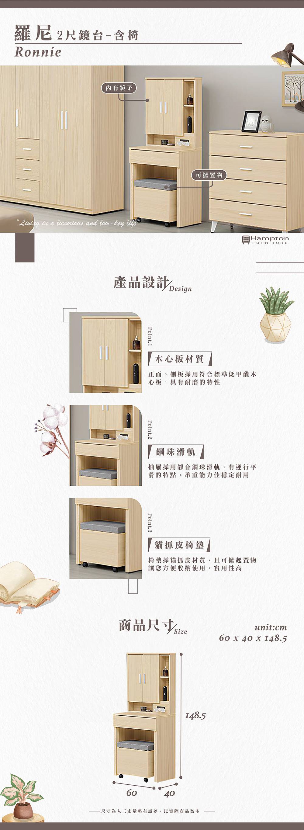 | ● 商品特色 | 1.木心板材質 結構穩固使用安心 2.靜音鋼珠滑軌 運行平滑 3.貓抓皮椅墊 可掀起置物 |