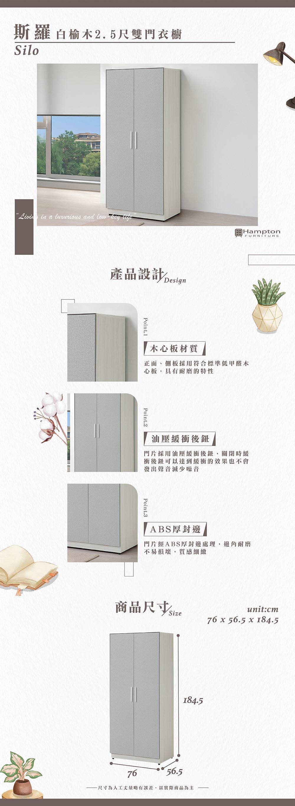 | ● 商品特色 | 1.木心板材質 結構穩固使用安心 2.不鏽鋼油壓緩衝後鈕 3.門片為ABS厚封邊 |