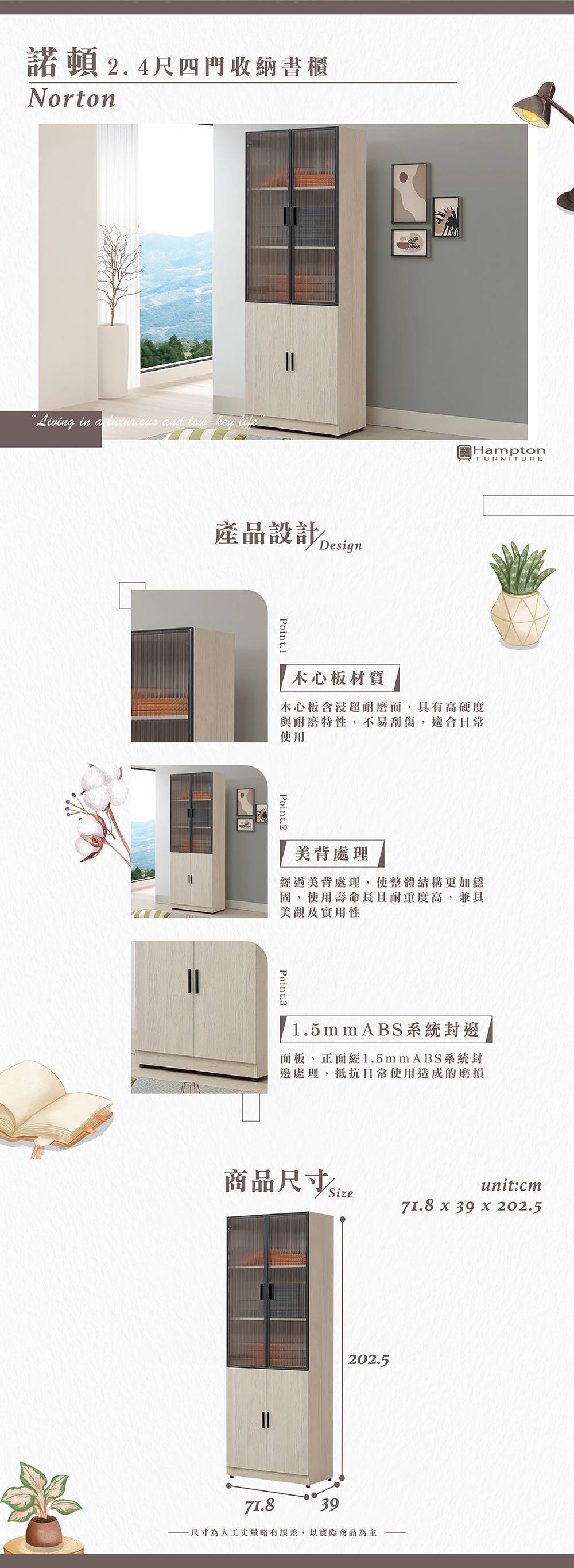 71.8 x 39 x 202.5 cm (細節尺寸請參照文案) |