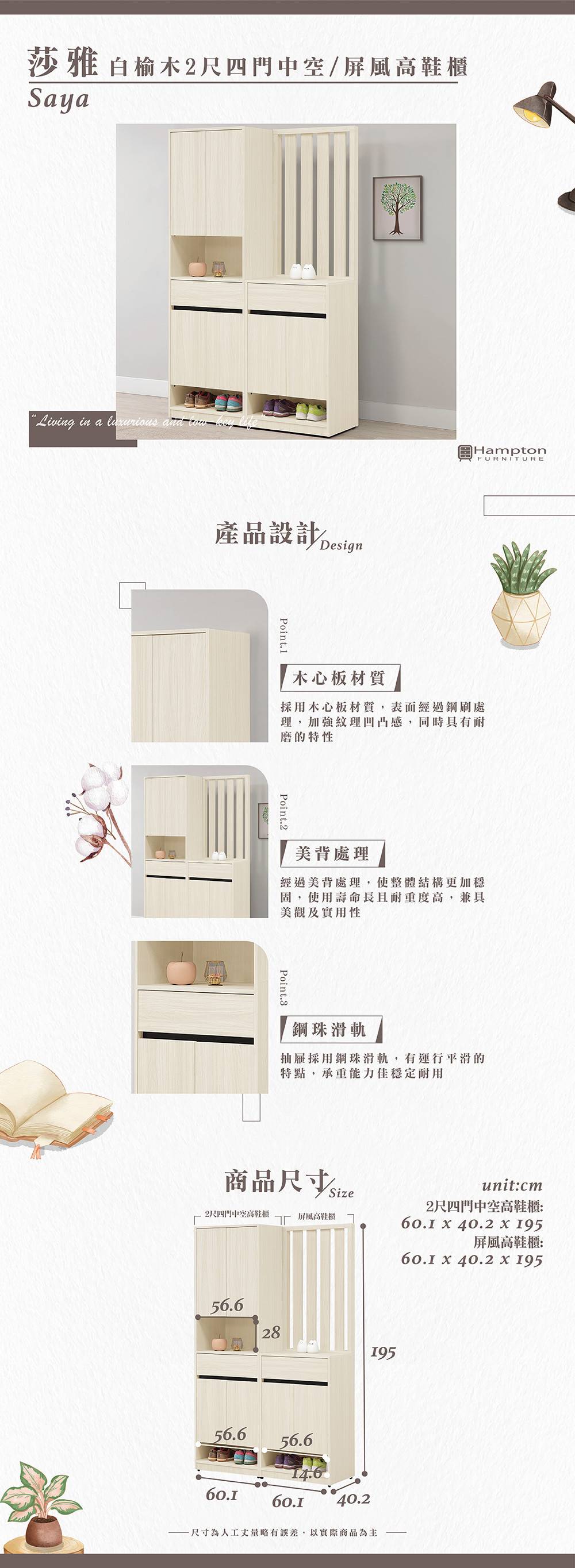 莎雅白榆木鞋櫃-2尺四門中空/屏風高鞋櫃