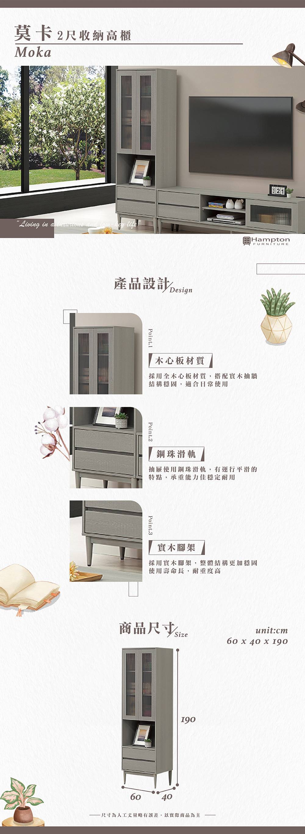 60 x 40 x 190 cm (細節尺寸請參照文案) |