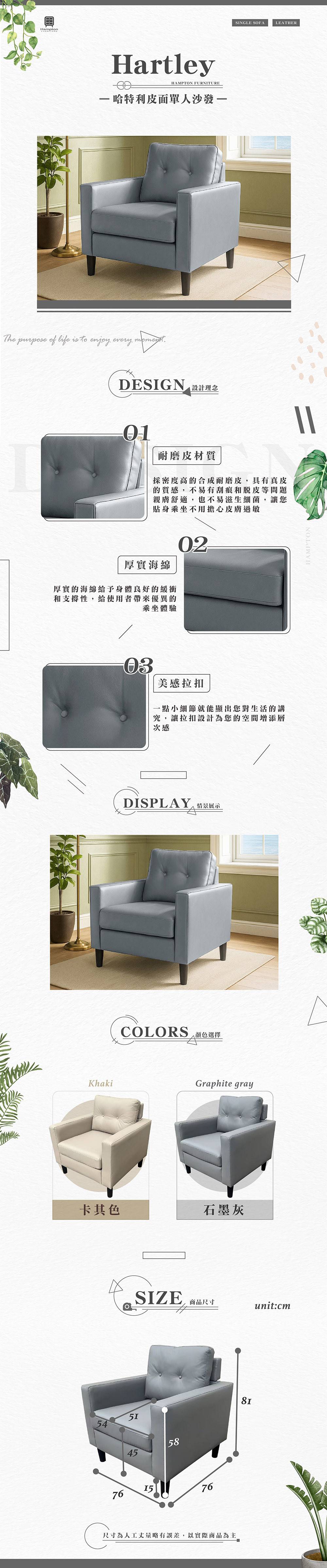 商品詳情 ● 商品特色 1.耐磨皮材質 耐刮耐磨 2.厚實海綿 支撐性佳 3.美感拉扣 ● 商品尺寸 76 x 76 x 81 cm(細節尺寸請參照文案) ● 配送方式 一般宅配 ● 組裝方式 自行組裝商品,有附說明書,若有疑問請洽公司客服 哈特利皮面單人沙發-多色可選 TWD $4,280 TWD $2,890