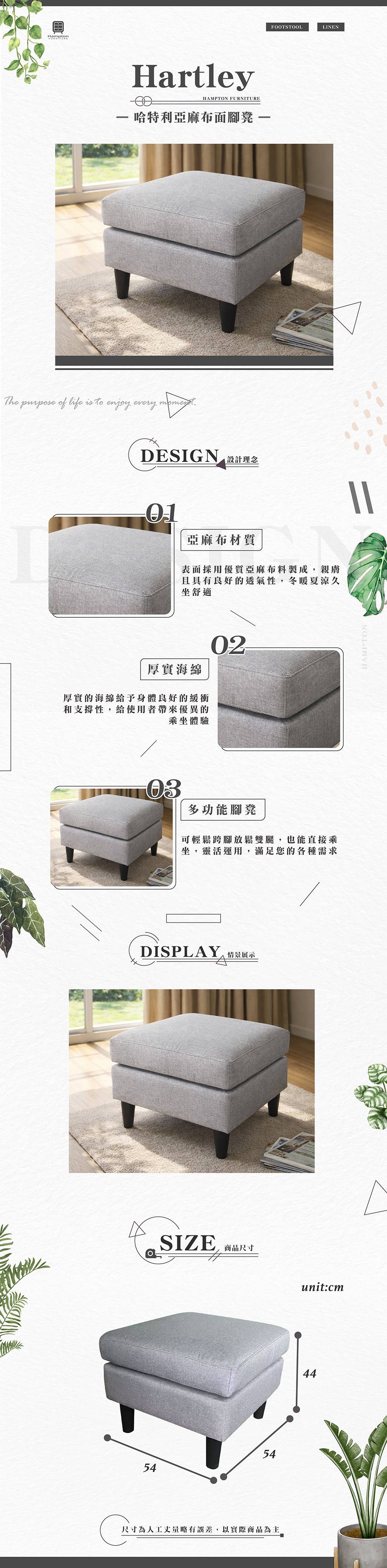 商品詳情 ● 商品特色 1.亞麻布材質 耐刮耐磨 2.厚實海綿 支撐性佳 3.一凳多用 可跨腳可乘坐 ● 商品尺寸 54 x 54 x 44 cm(細節尺寸請參照文案) ● 配送方式 一般宅配 ● 組裝方式 自行組裝商品,有附說明書,若有疑問請洽公司客服 哈特利布面腳凳-淺灰色 TWD $3,250 TWD $1,290