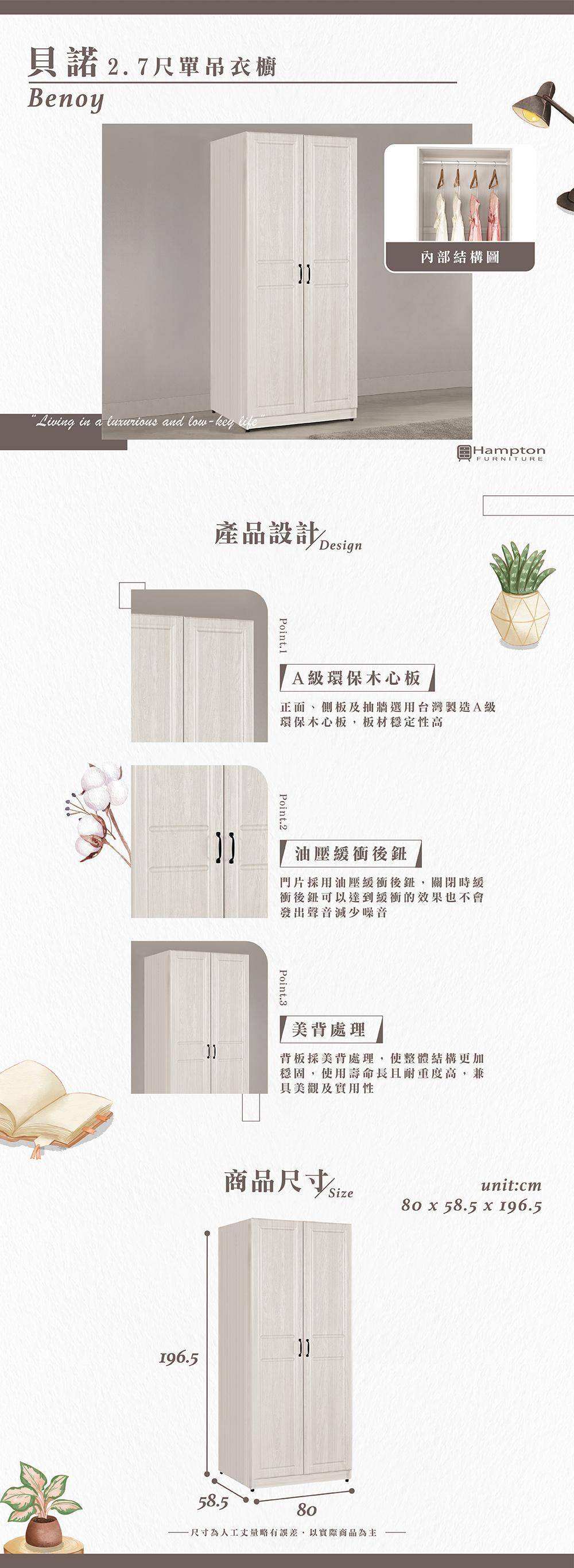 貝諾2.7尺單吊衣櫥