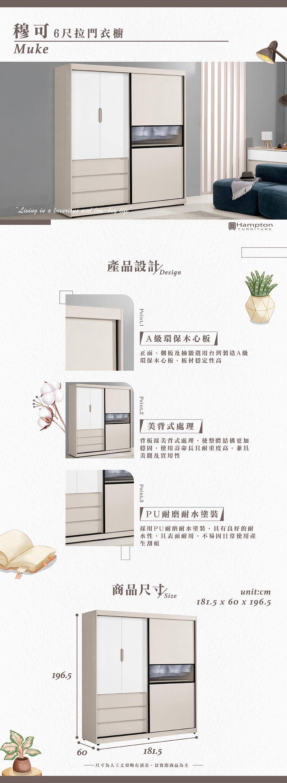 穆可6尺拉門衣櫥