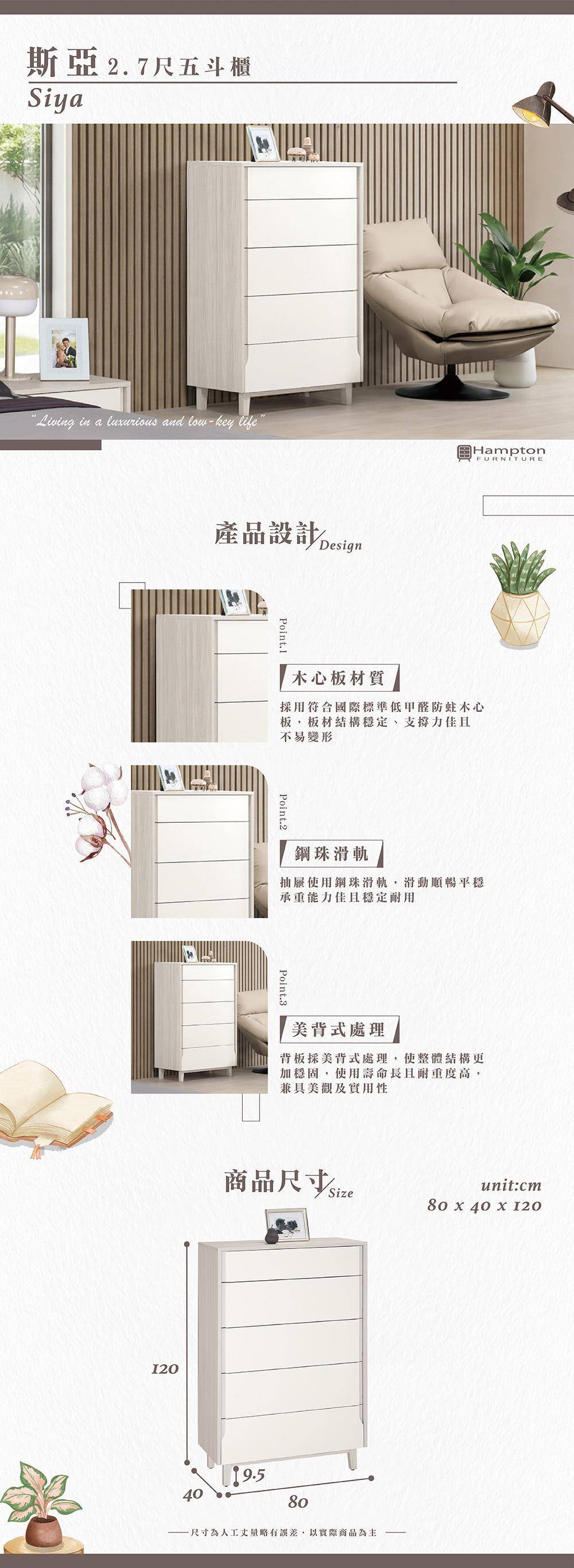 斯亞2.7尺五斗櫃