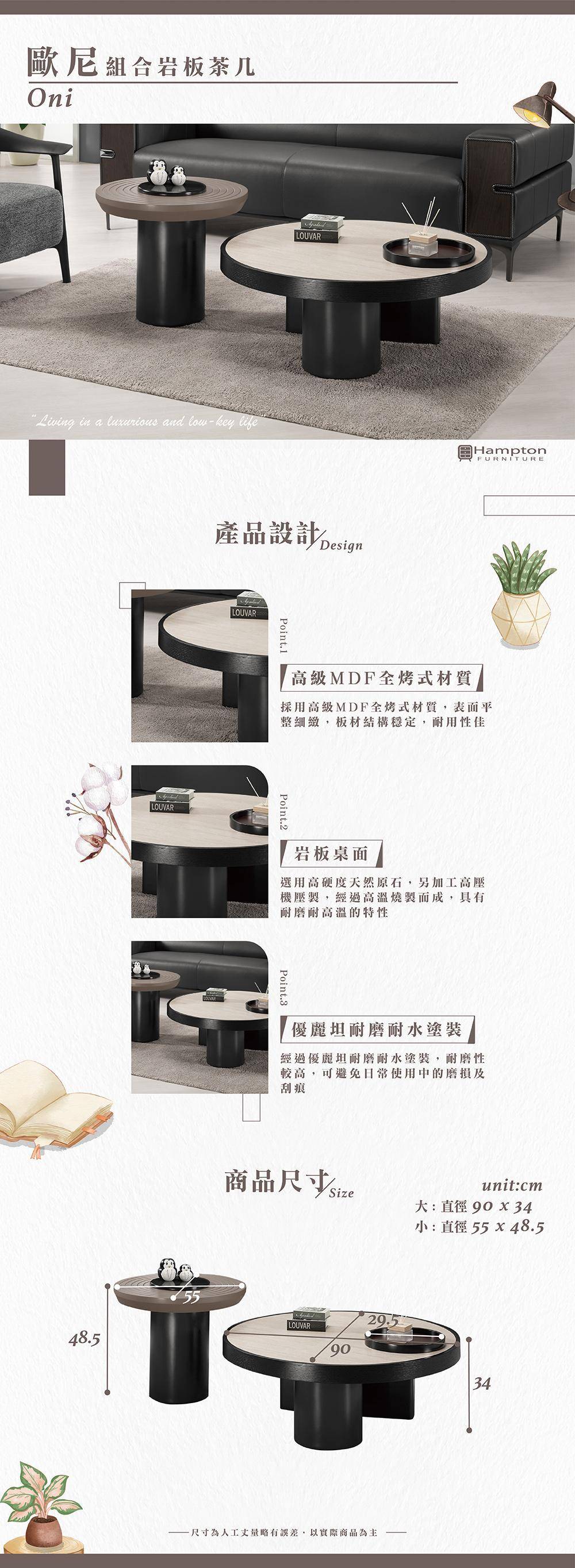 大茶几:直徑 90 x 高 34 / 小茶几:直徑 55 x 高 48.5 cm (細節尺寸請參照文案) |