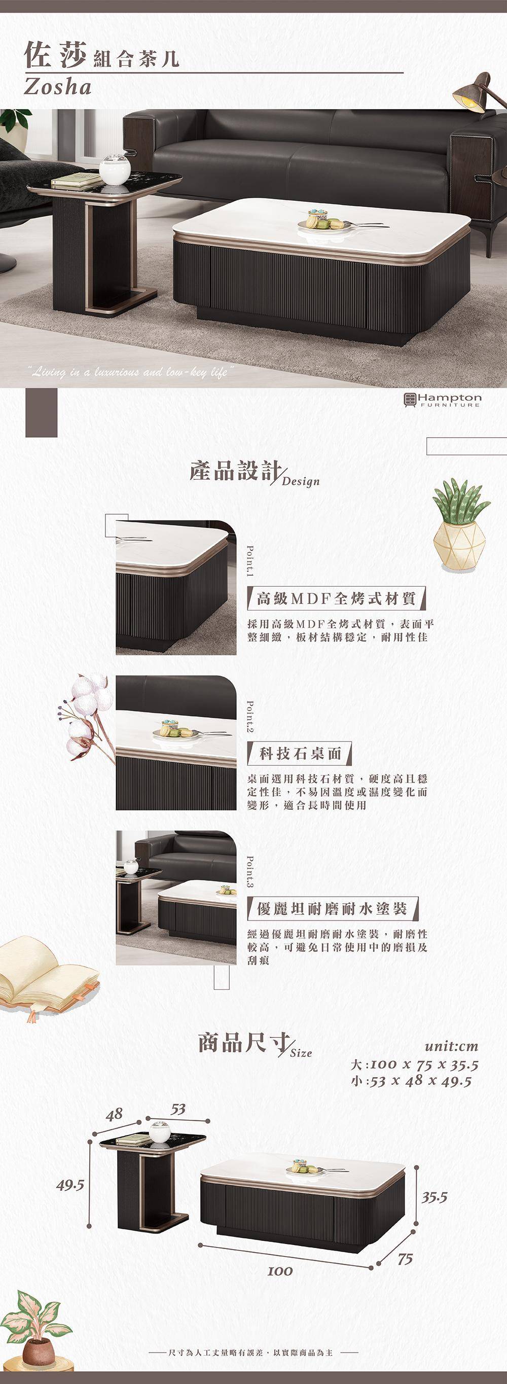 大茶几:100 x 75 x 35.5 / 小茶几:53 x 48 x 49.5 cm (細節尺寸請參照文案) |