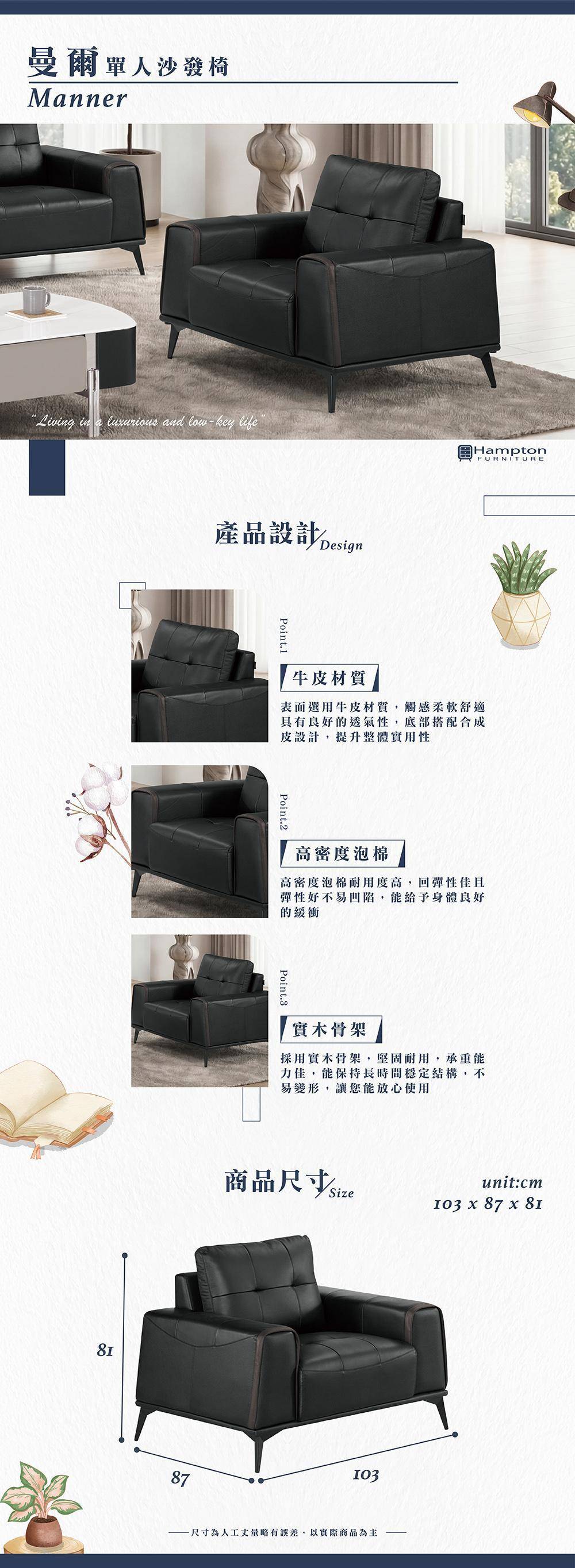 | ● 商品特色 | 1.表面牛皮材質 觸感柔軟舒適 2.高密度泡棉 彈性佳 3.實木骨架 堅固耐用 |