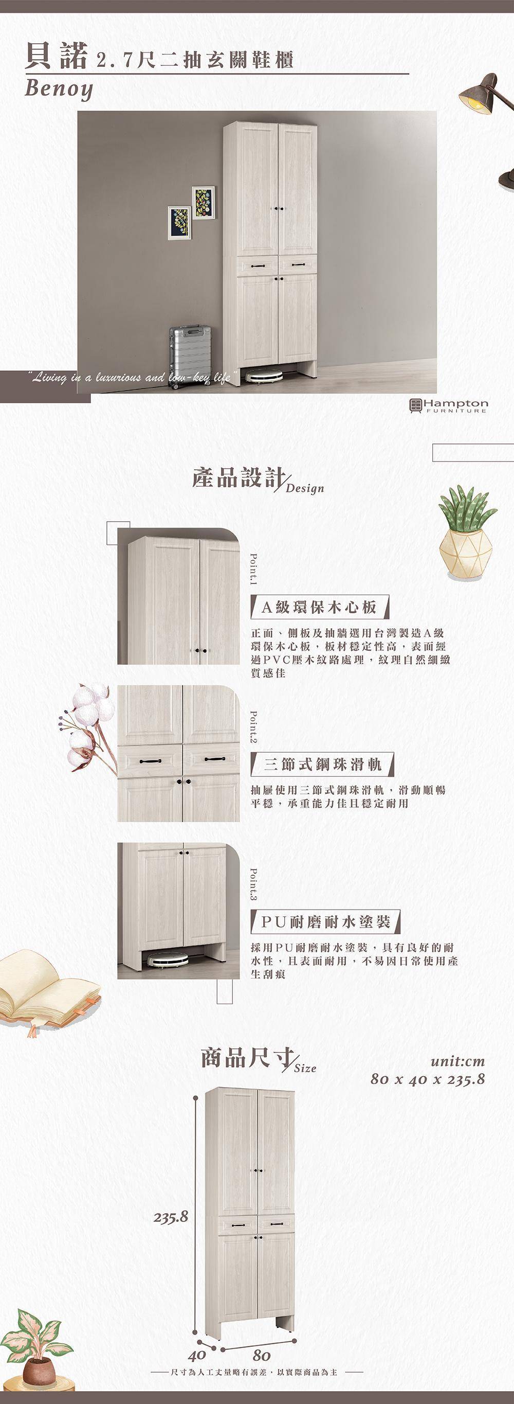 貝諾2.7尺二抽玄關鞋櫃