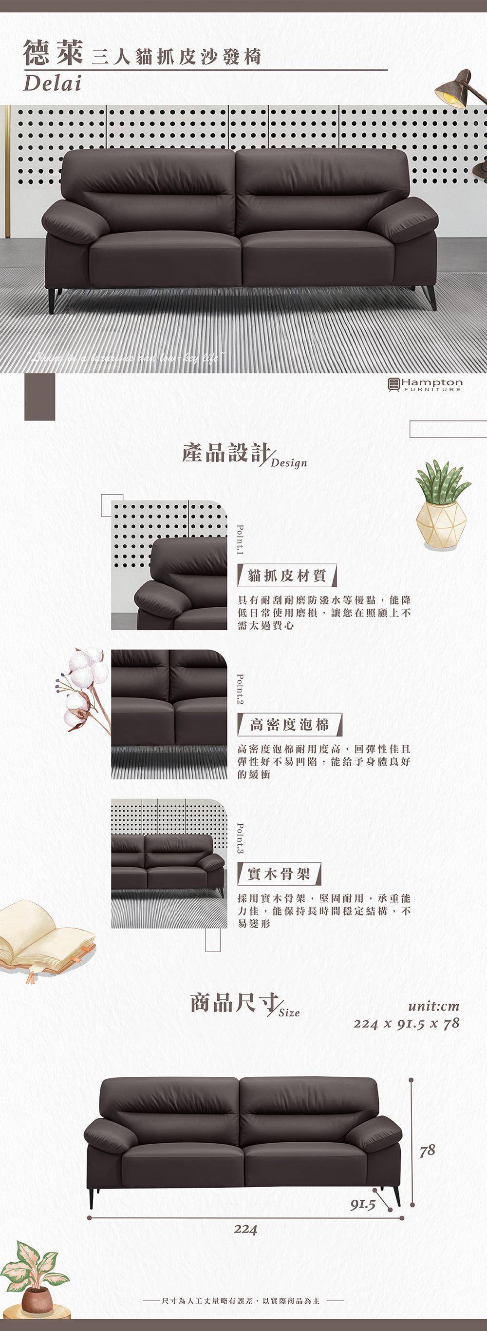 | ● 商品特色 | 1.貓抓皮材質 耐刮耐磨防潑水 2.高密度泡棉 彈性佳 3.實木骨架 堅固耐用 |