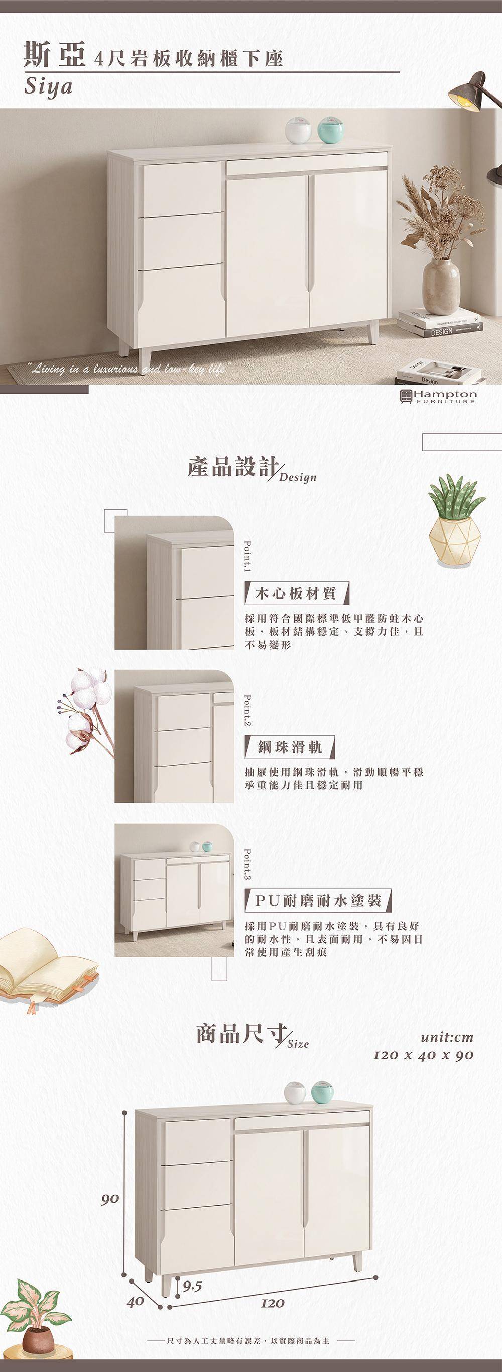 斯亞4尺岩板收納櫃下座