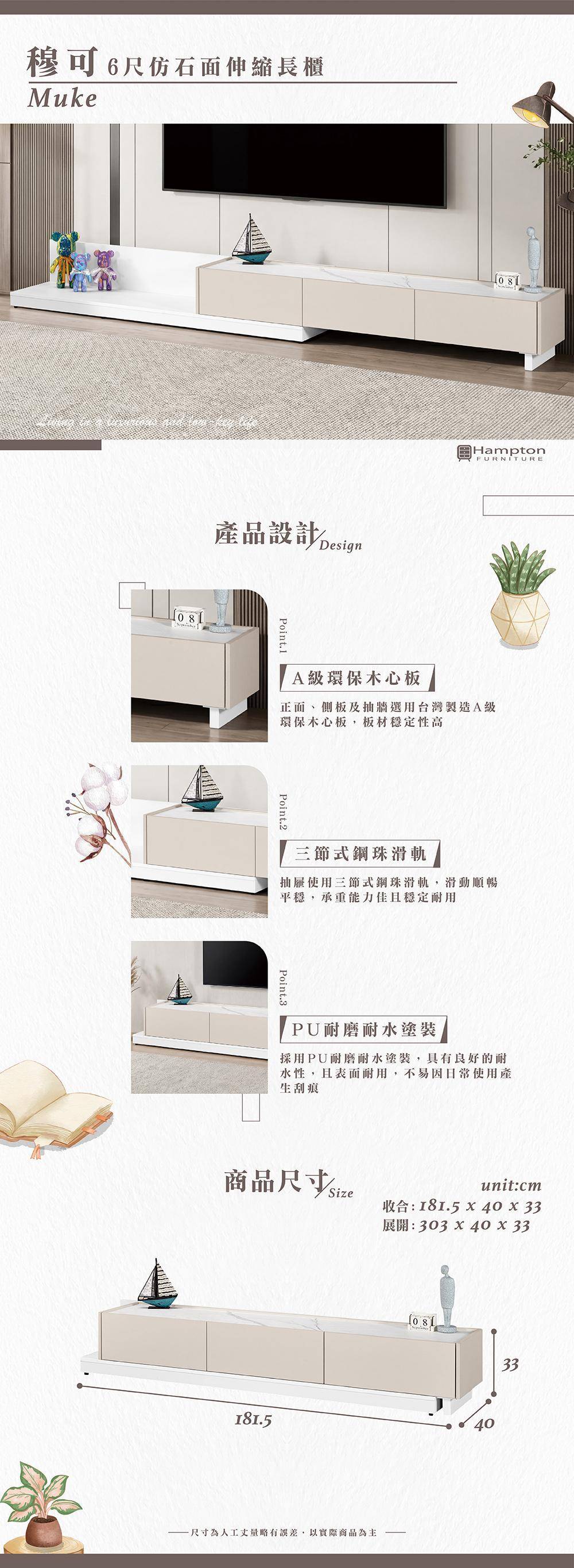 收合:181.5 x 40 x 33 / 展開:303 x 40 x 33 cm (細節尺寸請參照文案) |
