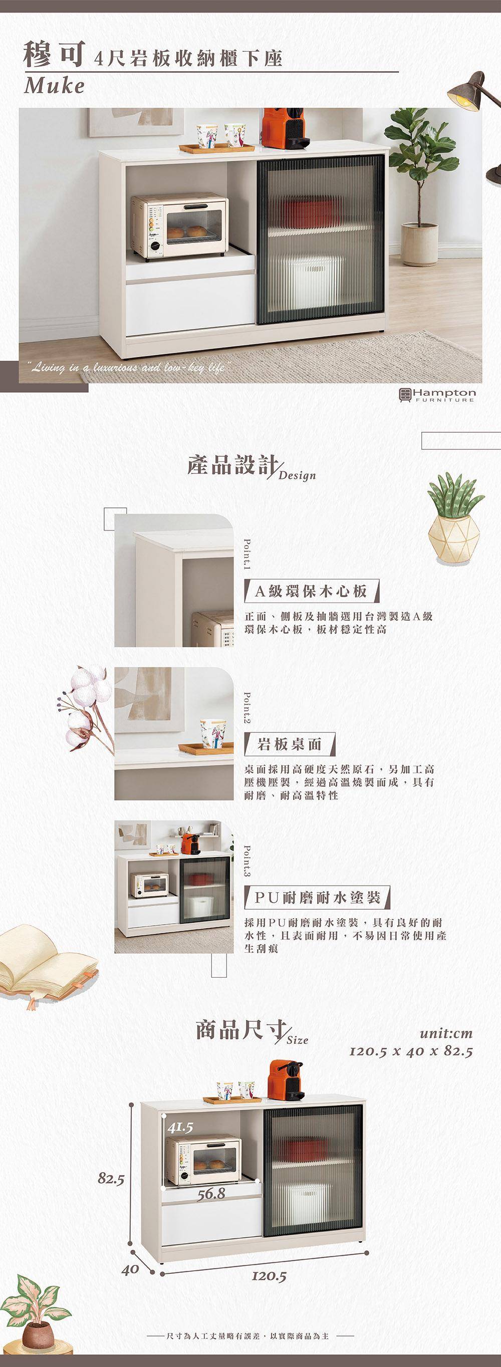 穆可4尺岩板收納櫃下座