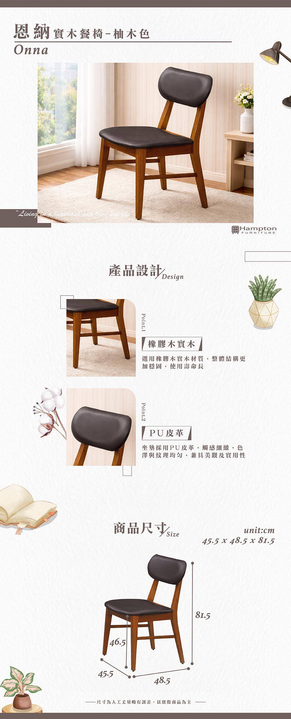 | ● 商品特色 | 1.橡膠木實木材質 2.PU皮革 觸感細緻 3.穩固耐用 |