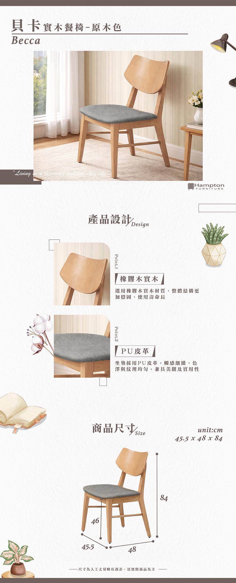 貝卡實木餐椅-原木色-2入組/4入組