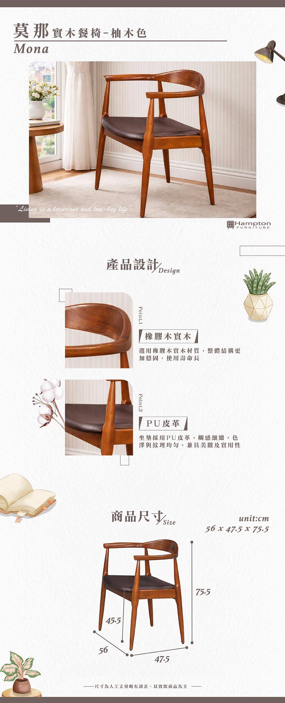 | ● 商品特色 | 1.橡膠木實木材質 2.PU皮革 觸感細緻 3.穩固耐用 |