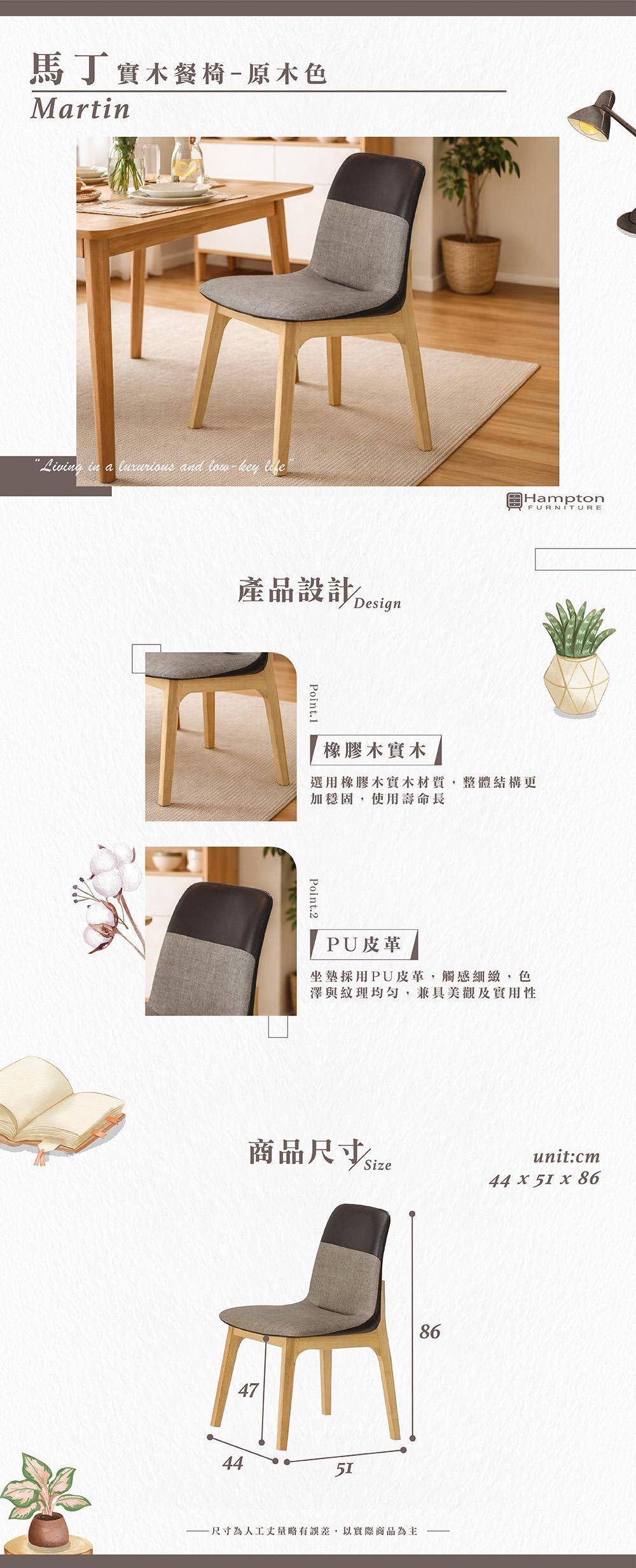 馬丁實木餐椅-原木色-2入組/4入組