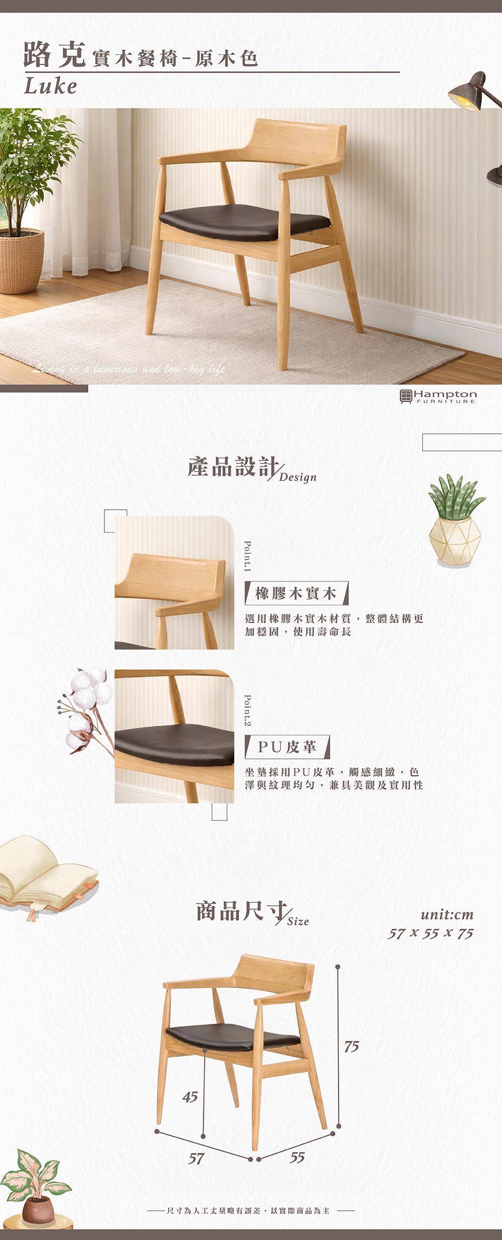 | ● 商品特色 | 1.橡膠木實木材質 2.PU皮革 觸感細緻 3.穩固耐用 |