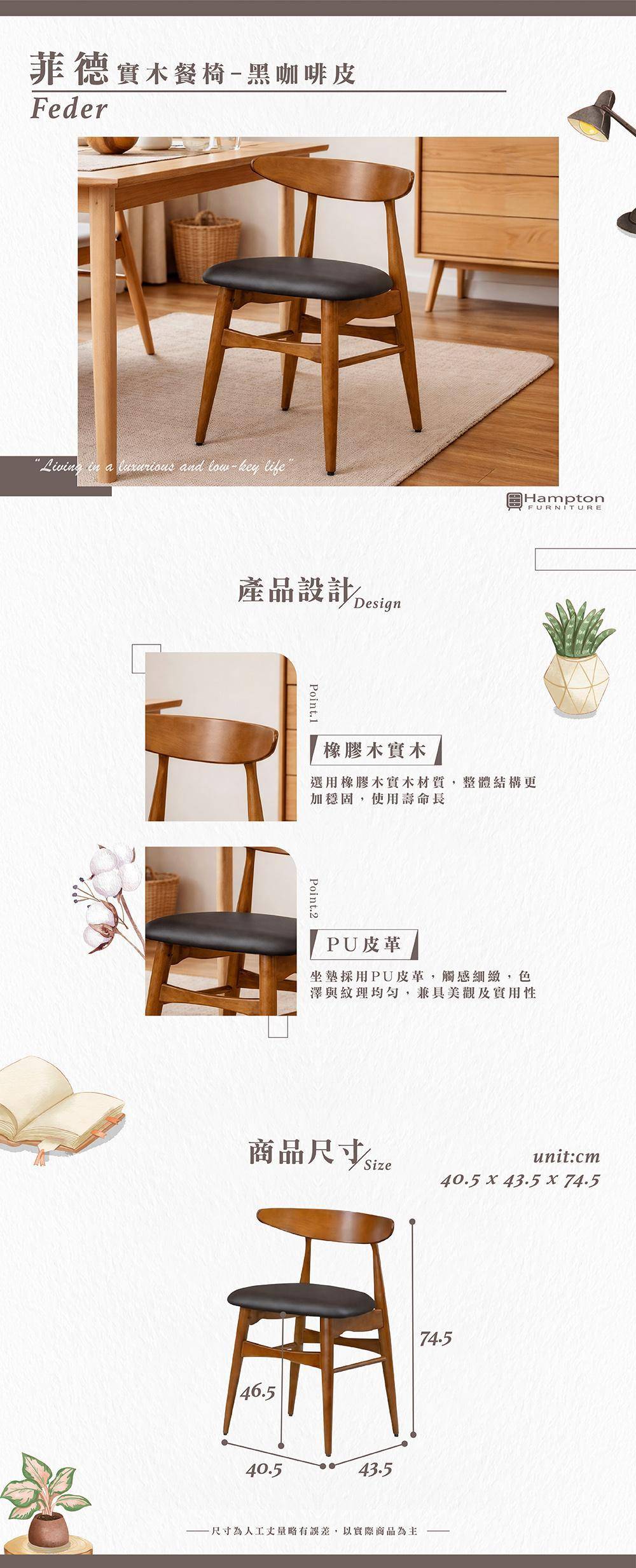 菲德實木餐椅-黑咖啡皮-2入組/4入組